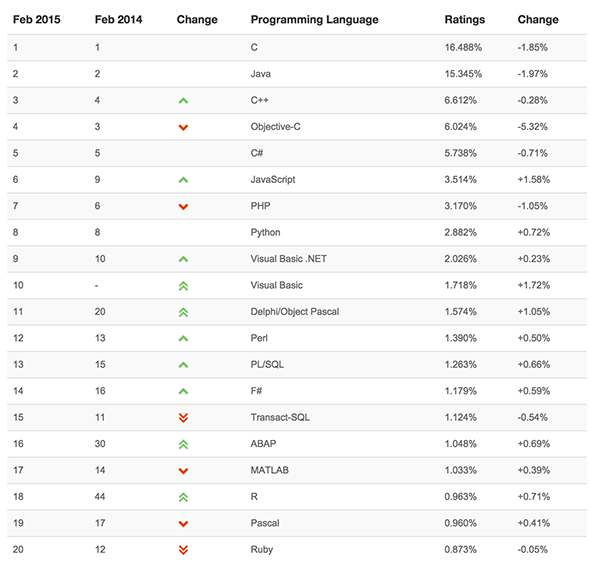 這個排行榜可以用來考查你的編程技能是否與時俱進,也可以在開發新系統時作為一個語言選擇依據。排行榜的詳細定義可以參考這里( 英文)。