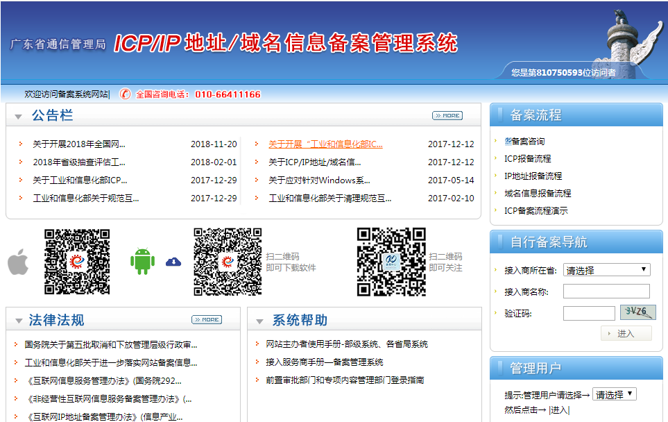 如果是廣東省網站備案客戶,請在網站首頁右下部分找到 管局系統---廣東,進入廣東省通信管理區的網站備案頁面,可在此頁面查詢備案的相關信息等。