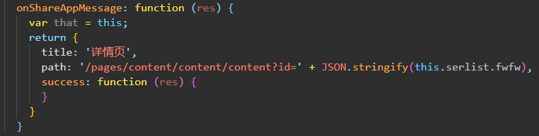 其中 JSON.stringify() 是把JavaScript對象轉換為字符串,以下代碼需要在小程序詳情頁js文件中設置。