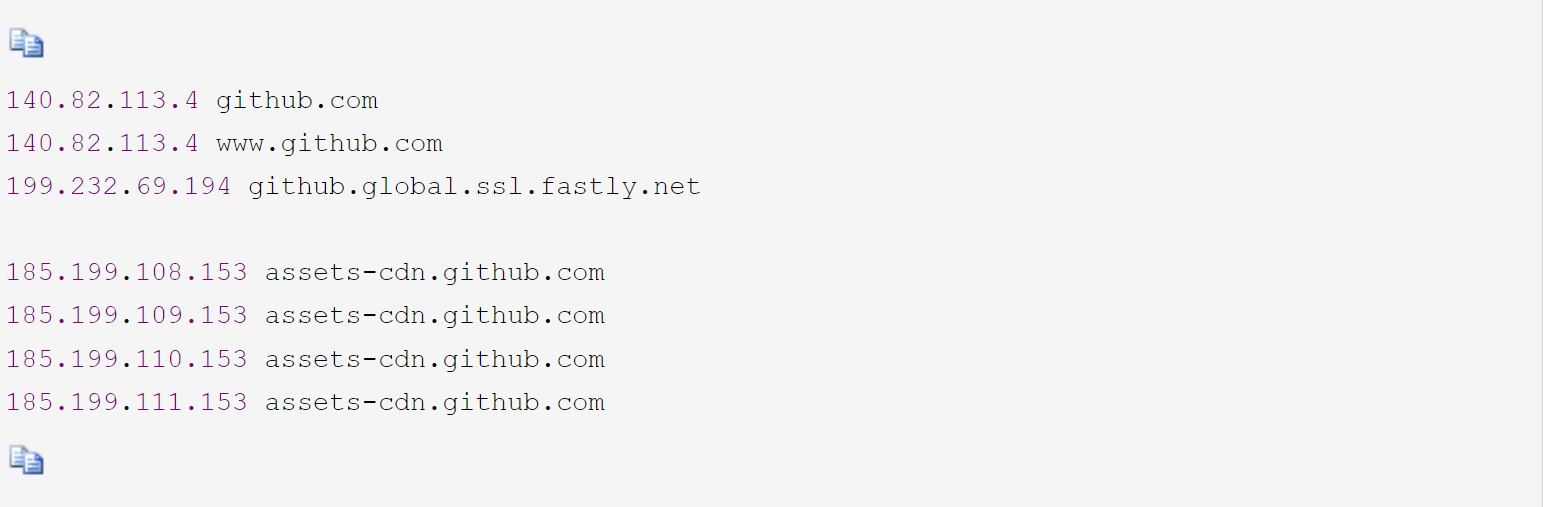 在hosts中配置以下內容:(注意:這種直接配置域名解析的方式配置的是靜態解析,未來IP地址變更后可能就無法使用了,需要及時使用更新的IP地址,至于怎么及時更新IP,可以參考域名解析網站解析的結果)