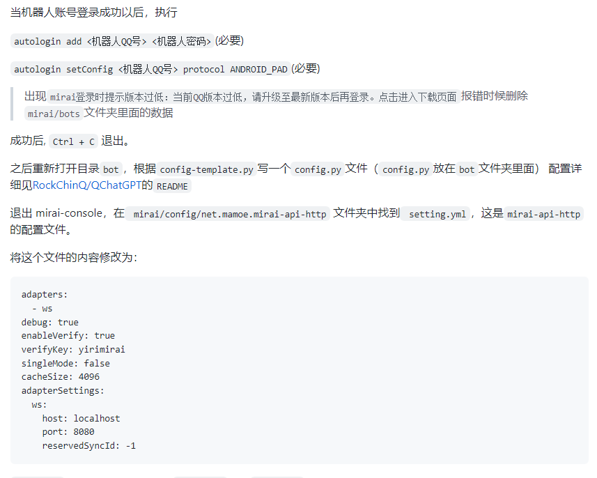 大概意思就是修改下OpenAI的ID、QQ機器人QQ號碼、端口號碼