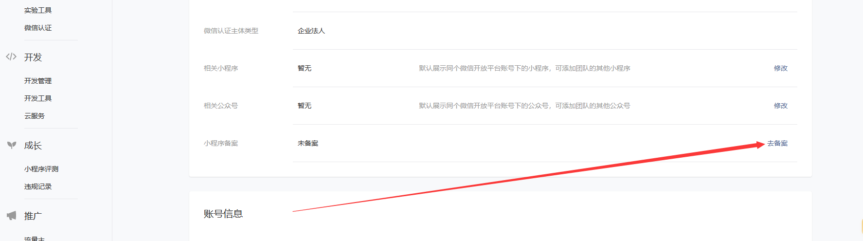 在設置=》基本設置下滑有個小程序備案點擊【去備案】即可進入備案流程