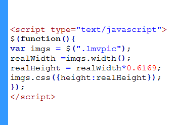 網頁上布局如產品列表,有時圖片寬度好控制,但高度不好控制, 如果固定了高度,一旦寬度設置了單位為百分比%,在有些屏幕上查看產品列表,會發現圖片出現了變形,為了自適應不同屏幕,保證圖片高度在不同屏幕下不變形,特別是移動端顯示,可用下面jquery方法來對圖片高度進行設置,讓圖片不變形。 ...