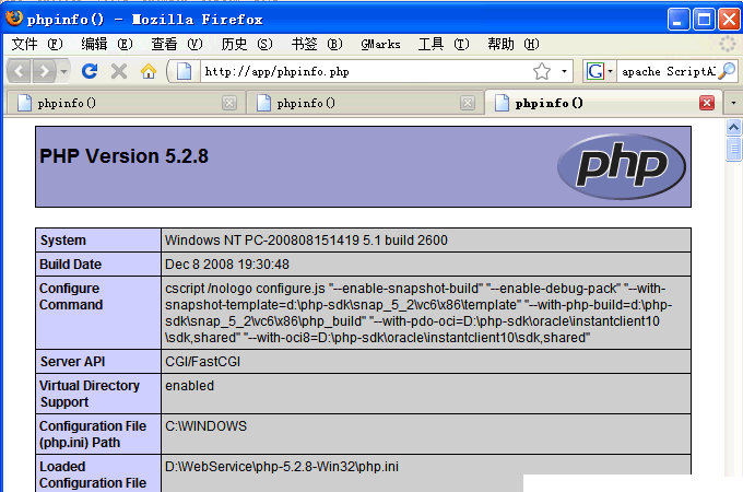 目前網上很多的解決方案是在本機安裝IIS和Apache或安裝多個apache服務,每個服務器安裝一個版本的php來達到版本共存的要求,但是要按照我的要求,這么做既麻煩又復雜(想想要調試10個版本的php怎么辦)。既然網上沒有,我就只好自己來研究,下面就是我摸索出的完美解決方案: