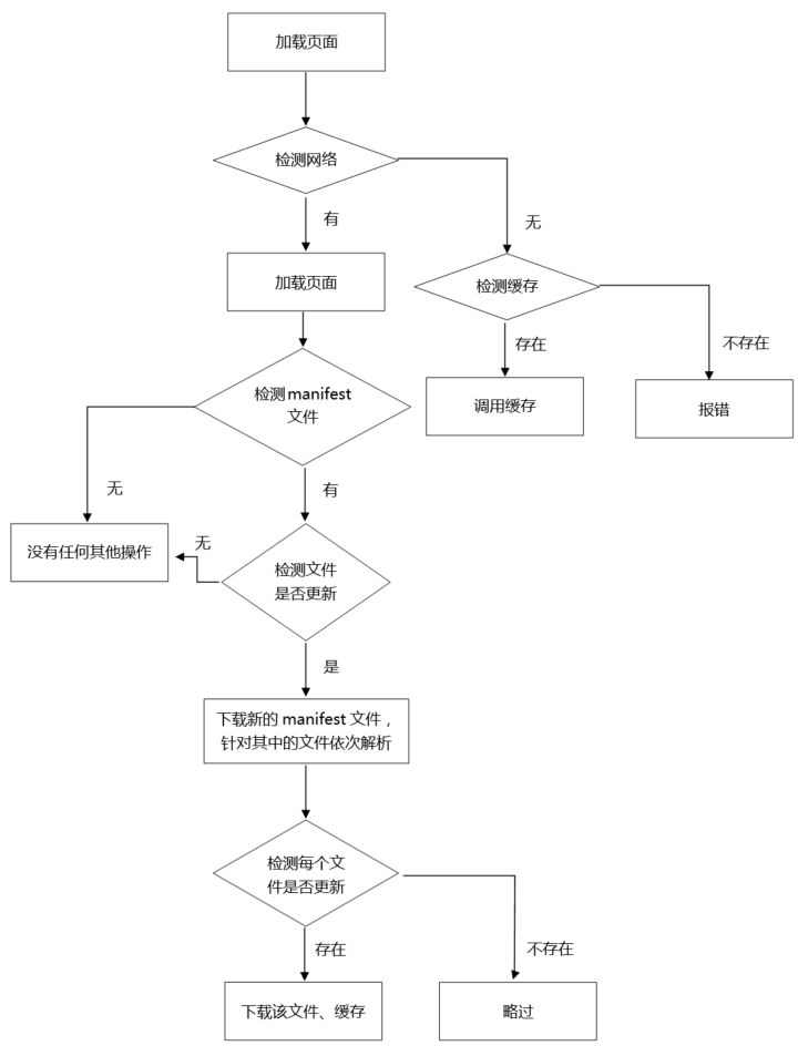 將需要離線緩存的文件羅列下來,存儲于后綴名為manifest的文件當中。 在HTML文件中引入manifest文件