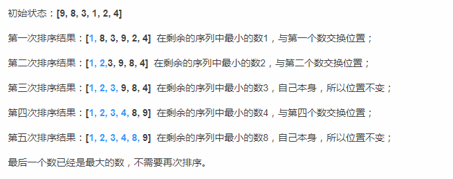 先找到序列中最小的數,將它和序列中第一個數交換位置;