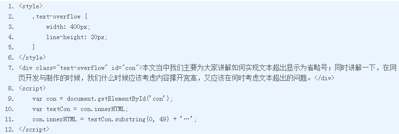 基本原理很簡單:通過innerHTML獲取元素的內容,之后使用字符串方法進行截取,截取前49個字符,之后,在這49個字符之后連接一個“...”,最后,將這個截取后的字符串賦值給原來的元素內容即可。