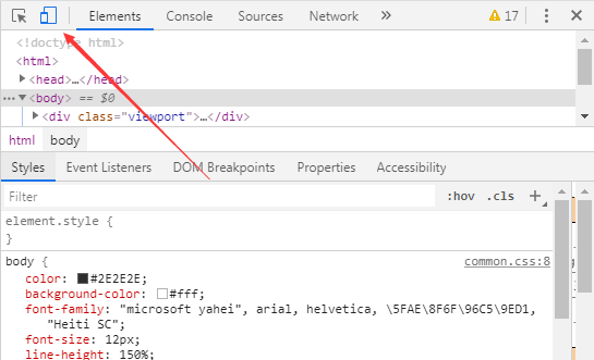 04. 那如何來設(shè)置為手機調(diào)試模式呢?我們可以看到在開發(fā)者模式下,可以看到調(diào)試模式面板左上角有一個“手機”樣式按鈕。