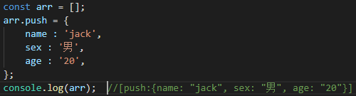 上面代碼中,常量arr儲存的是一個地址,這個地址指向一個數組。不可變的是這個地址,即不能把arr指向另一個地址,但數組本身是可變的,所以依然可以向里面添加值。
