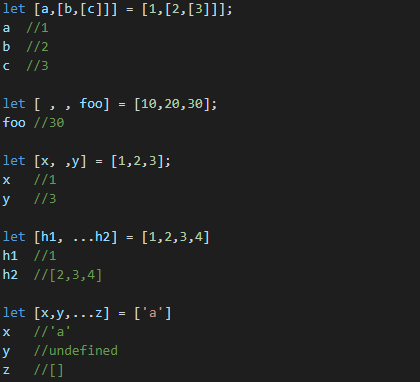 上面代碼中表示,可以從數組中提取值,按照對應的位置,對變量賦值。