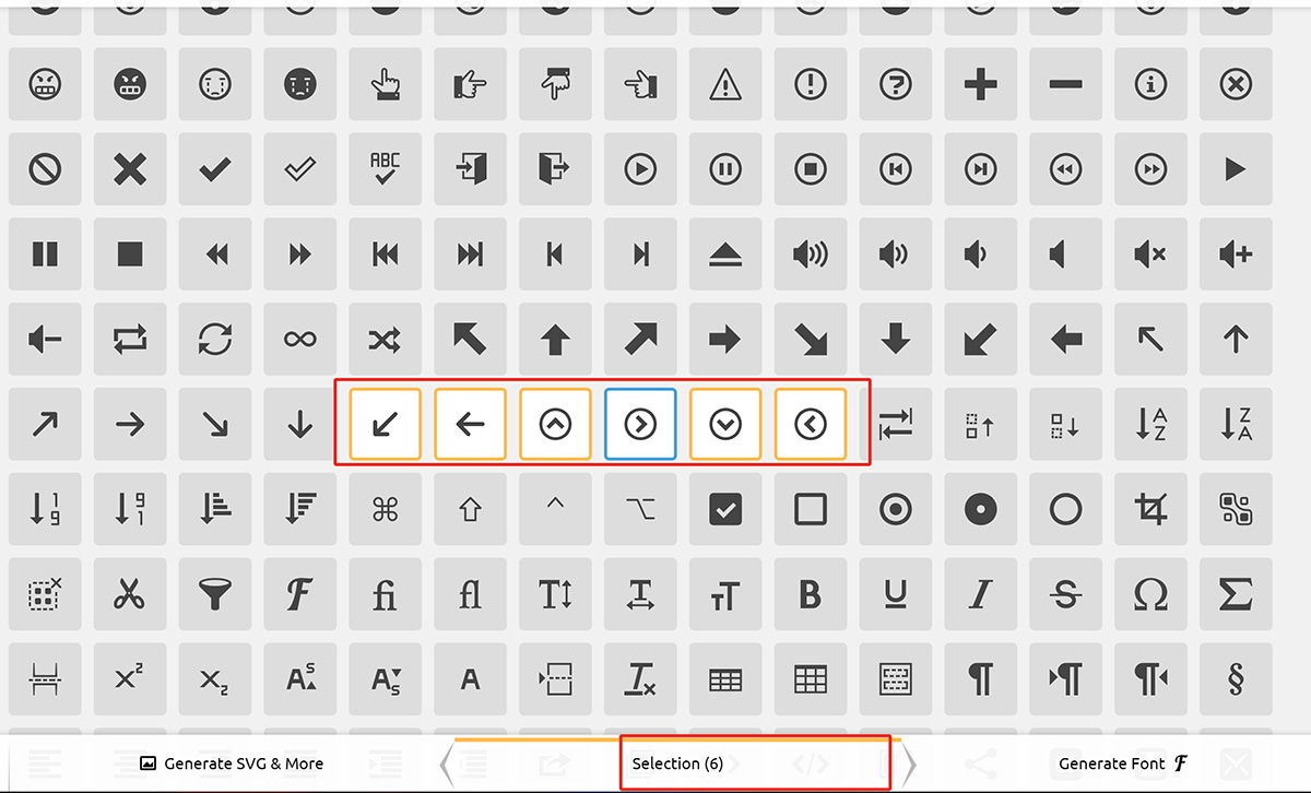 注意事項:不用的圖標建議不要選擇,如果全部選擇會增加icomoon.woff等文件的體積大小,導致網站上加載比較慢,所以,為了提高網站的性能,
